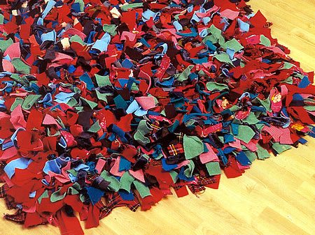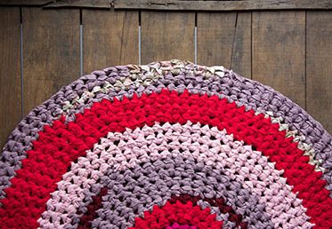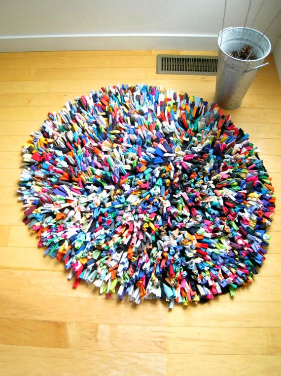 To make this colorful fabric rag rug below: