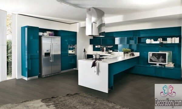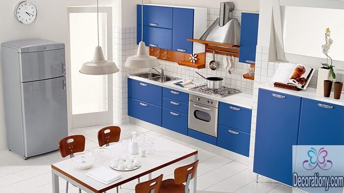 Give the different colorful kitchen colors a chance and don’t be shy! White is a classical color, but why don’t we step aside from all the whites a bit? Fair blue is an adorable kitchen color and will make you always feel the beach! You can use white as the primary color, but seriously, consider adding attractive colors in small details of style to give it a cool & luxury look!