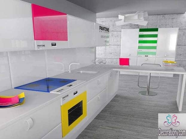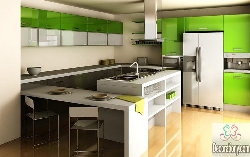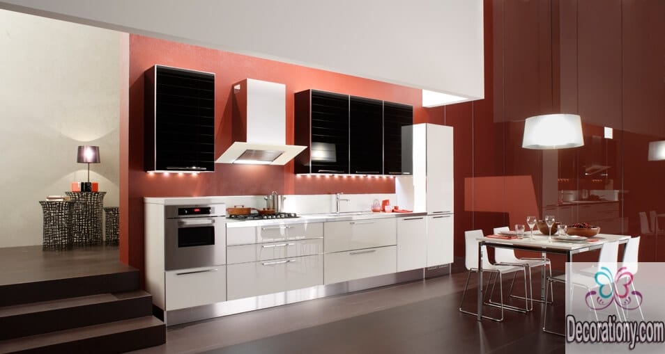 Act smart, increase your kitchen color ideas so you can easily and breezily control the appearance and the reflection of colors in your modern kitchen. You can use Horizontal stripes on a small kitchen wall to give it a wider appearance or Vertical stripes on the wall for a taller effect.