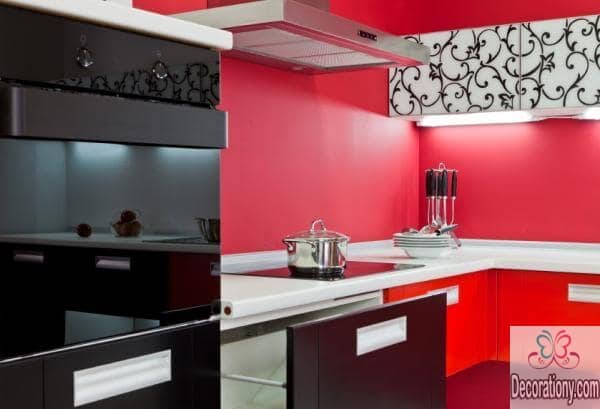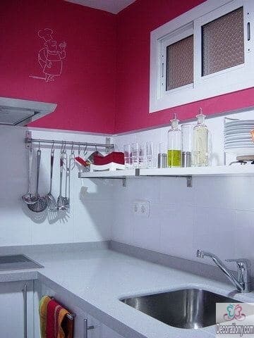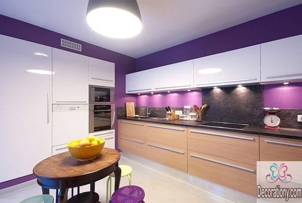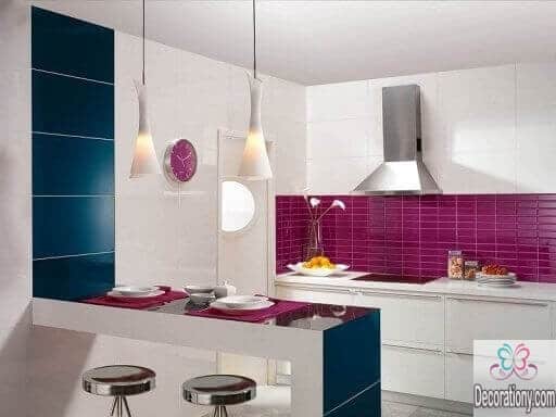 If you are feeling a little boldness in your personality, you can show it by using some stylish bold colors for the kitchen. Try to mix violet with white, both colors are perfect for the back ground kitchen wall. If you are not feeling very violent in the kitchen, you can use dark blue or purple blue in the minimal wall space. Adding bold colors in small spaces is a creative idea to catch the eyes’ attention.