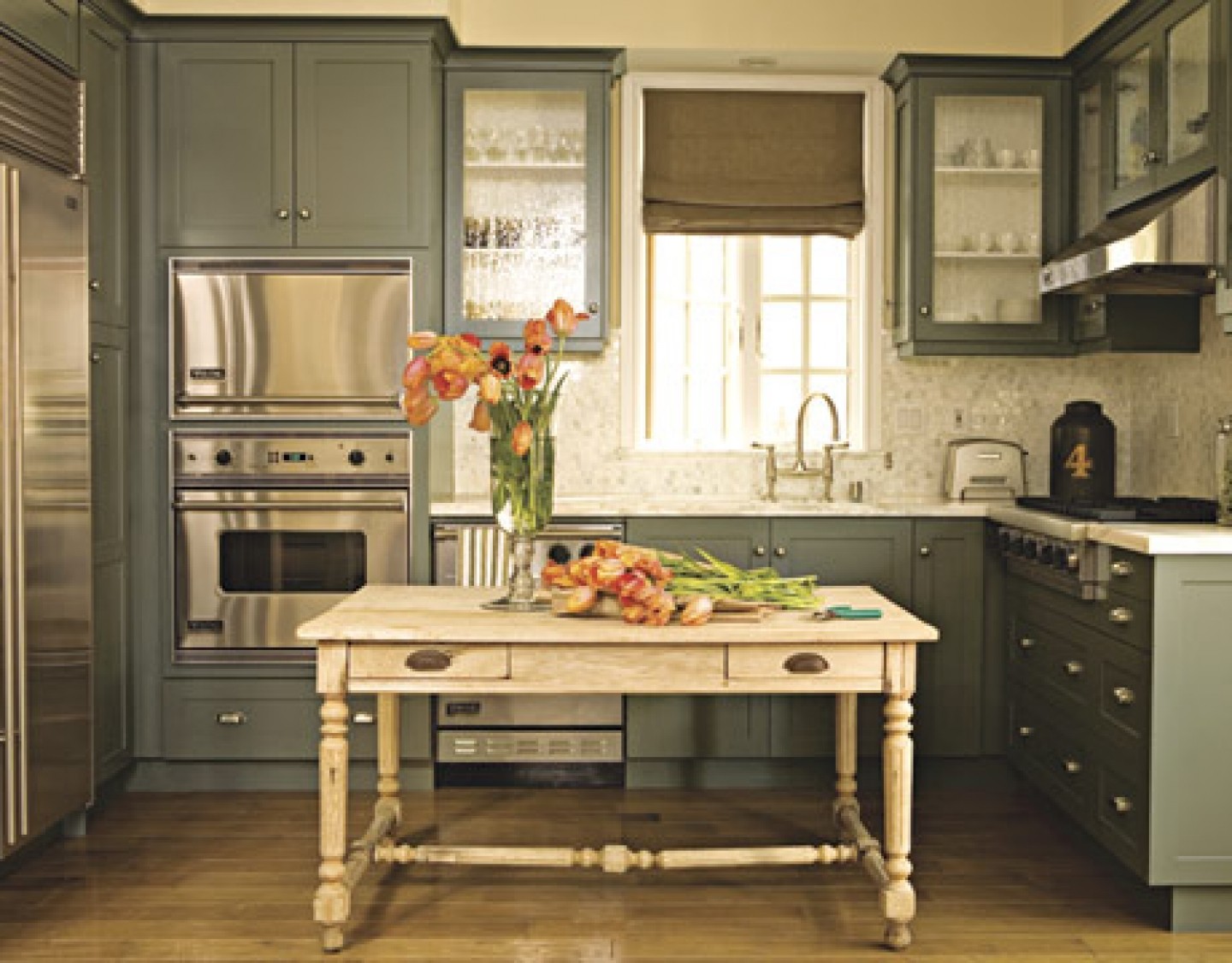 “Most kitchens have minimal wall space, so it’s a good place to splash some bold color and make a statement without overpowering the room.” Says the interior designer, Jamie Drake.