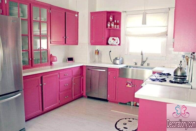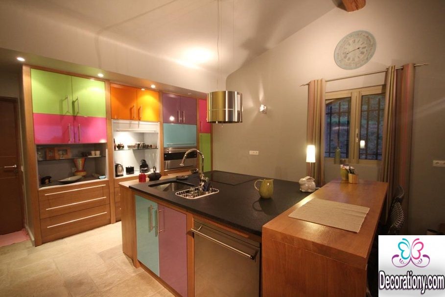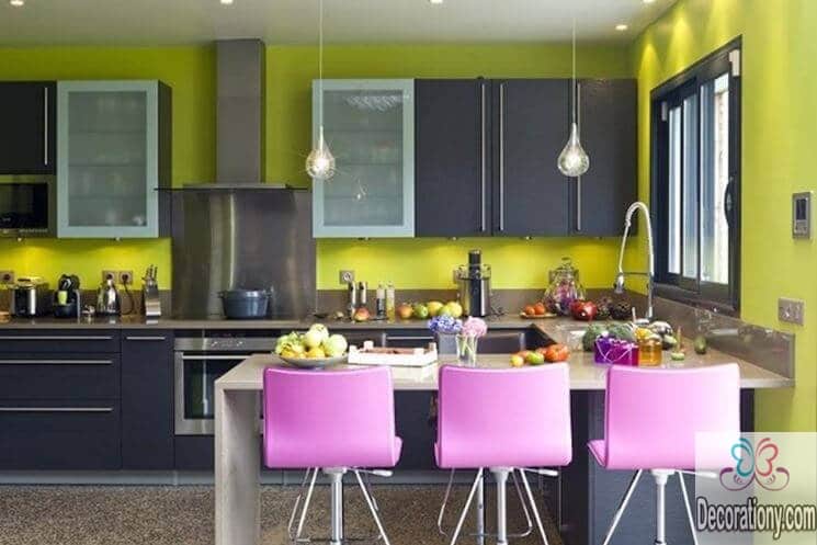 When thinking about the best colors, white or wood tones are always amongst each year classic color trends. But on the other hand, if you are feeling more stature colors, then you should go for turquoise, blue or greenery. If you feel a little bolder, you can go play with the tones of red, orange, or pink! Just be wise with the colors until you pick your kitchen style and color scheme. Here’s my personal preference; Pale purple, Salmon, Lime Green, and Dark Blue.