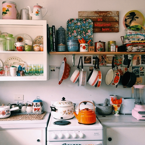 Gray paint for the kitchen is proven to give more visual space into a small kitchen since it is considered one of the popular neutral kitchen paint colors. However, if you do not like it solid you can add more texture with some orange paintings. See the below orange & gray kitchen color ideas. You can also use your colorful plates and mugs as a decoration material.