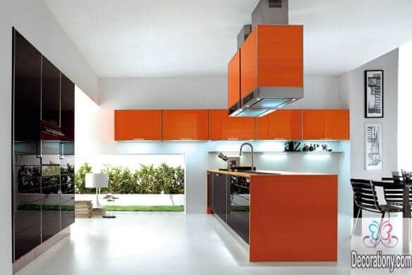 Black is always luxury color for kitchen or any room if you use it wisely, But in this design we use a lot of blacks and to do that you have to mix it with light colors like bright orange and you have to use white colors on the kitchen table surface, Add extra light units in kitchen will be necessary for black kitchens. Use the new stylish kitchen trends 2017 for decorating your kitchen and help to make a contemporary interior design.