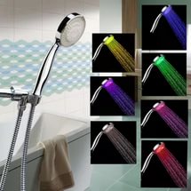 This one comes with 7 LED light colors. Its colored plastic head can fit most standard shower pipes. The LED lights change quickly so it will be more of a wake-up routine.