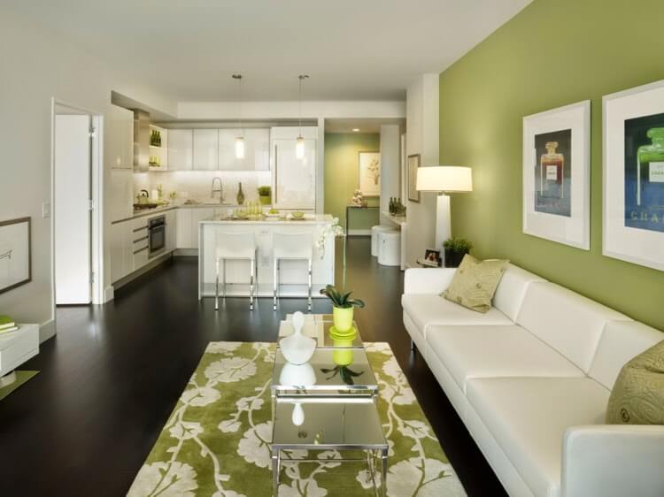 Will you be brave to use that color? If you notice, it’s not very far from greenery! And it is still the color of the year! You can also have a touch of acid lime on furniture or walls instead of the whole living room. - Taupe beige and earthy green