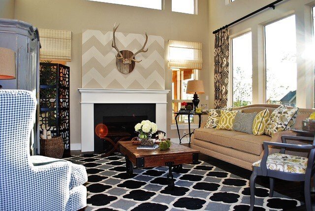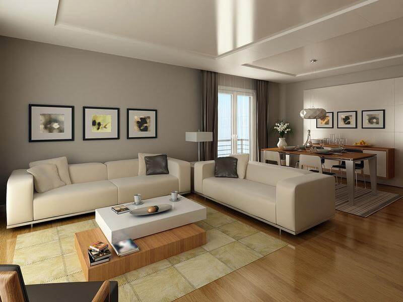 By using taupe beige in the ceiling and adding some white color, your room will have a unique and bright appearance. Use Earthy green color on the walls alongside with beige tones and your living room will be flourished with nature.