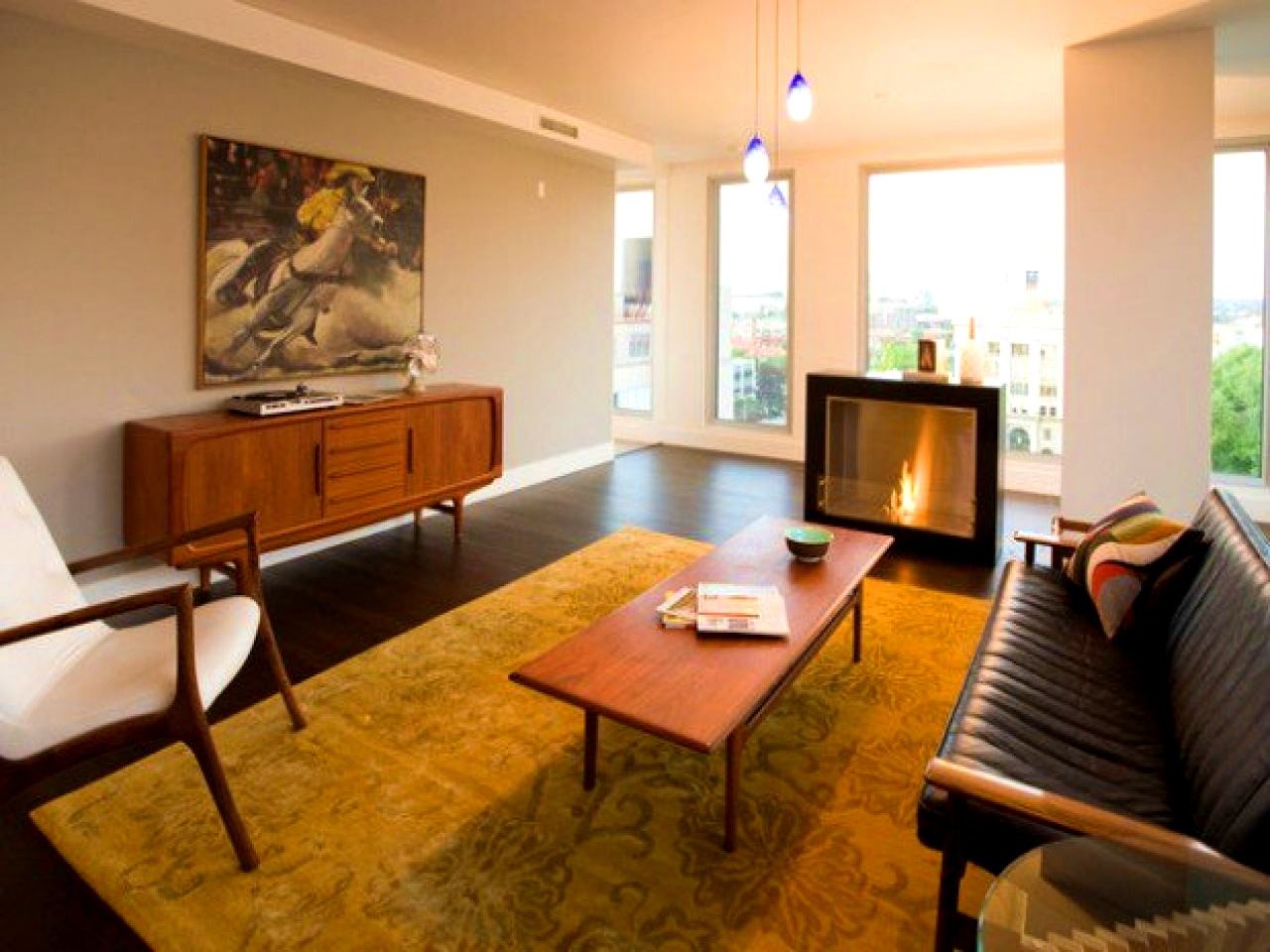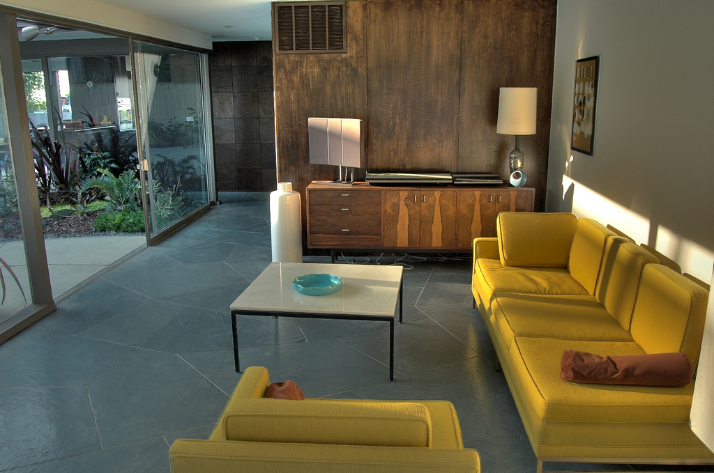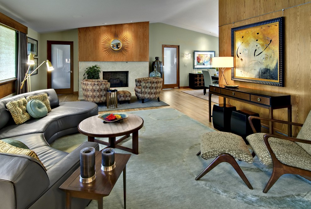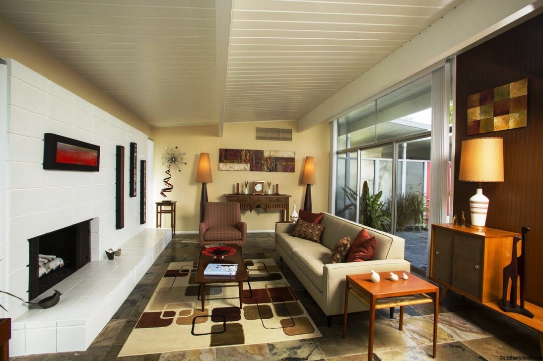 Also, using a living room with fireplace will bring the spirit of the mid-century era to the place.
