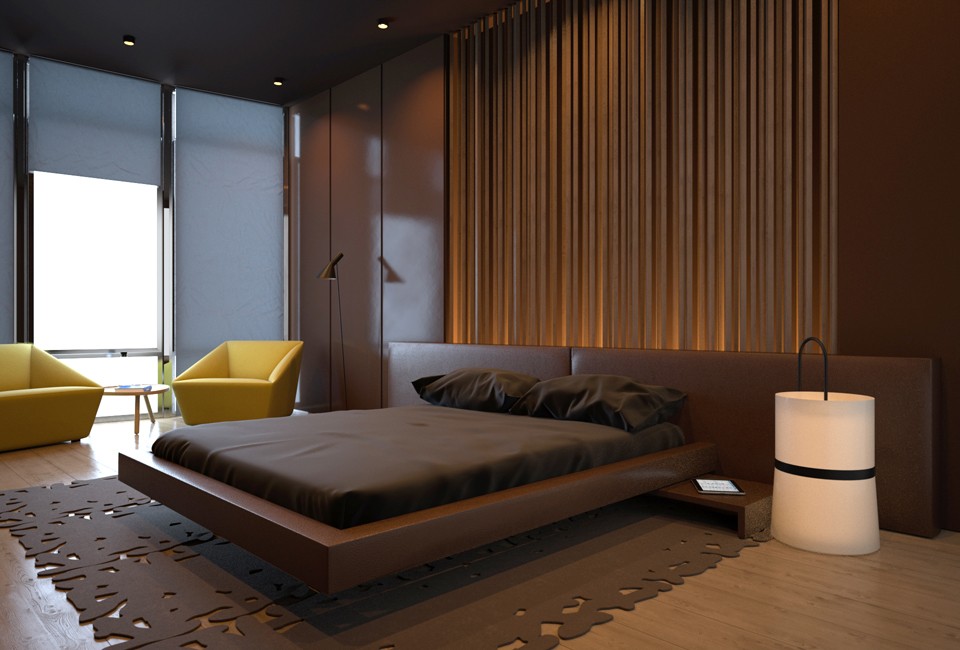 Cream, gray and brown are popular colors that can be beautifully combined with a radiant shade or bright wall color. The colors white and light colors on the wall are a great choice for small modern master rooms, the room will look much bigger due to the light color of the wall, and even ceiling colors are therefore recommended for bright tones for such small master rooms.