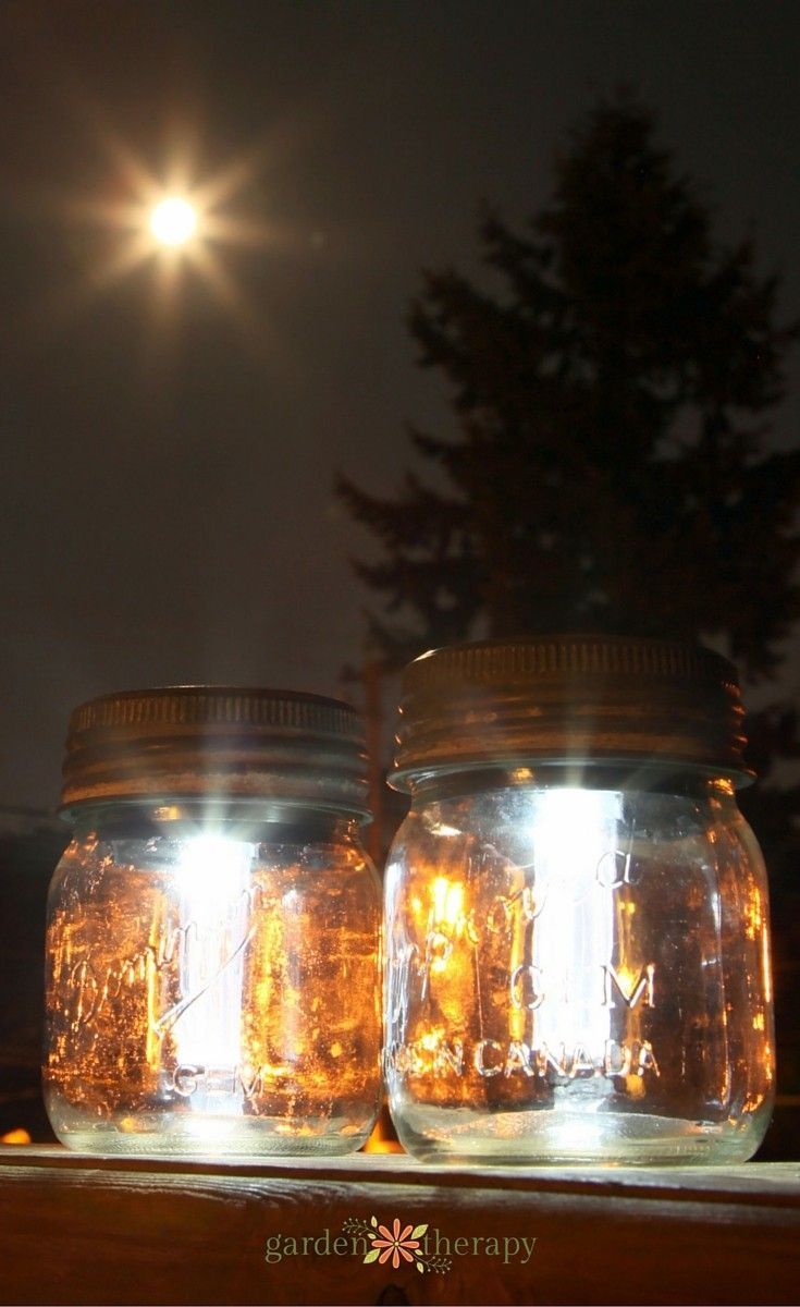 Mason jars are known as the best solar garden lights for its softness and many repurposing ideas. I would recommend you to place small rocks or stones at the base of your jars underneath the solar light to increase its stability then hang from a tree. You can paint it to change the color of the light.