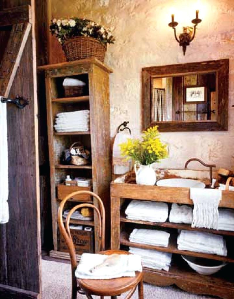 You should decide on how many rustic elements you want your bathroom to cover. You don’t want to crowd a small place or chop space of a large one. Also, consider matching the bathroom decor style with your house interior rustic theme. So you should match the material and colors of every detail.