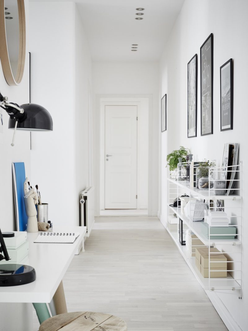 • Active use of white in the decoration of the Scandinavian foyer ideas. It is the main color used in the white ceiling, and in nearly everything, the same tonality for the walls. The white color is the characteristic Scandinavian-style in the paint. These ideas allow maximum propagation of light in the room, the reflection of the sun’s rays on the white surface allows the light to spread over the entire area of the room.