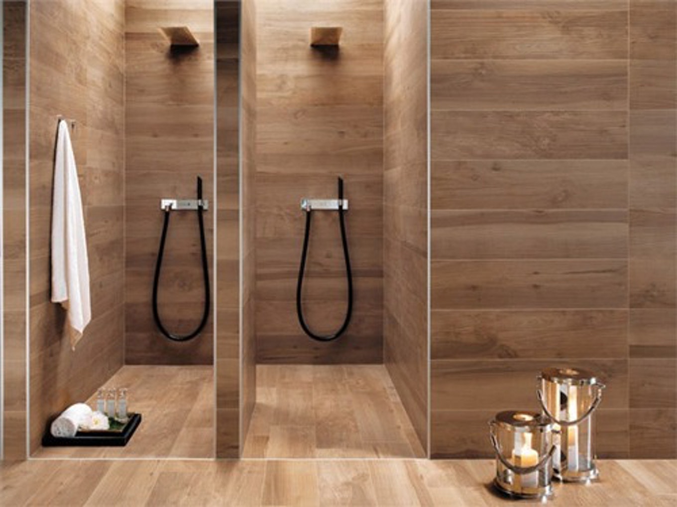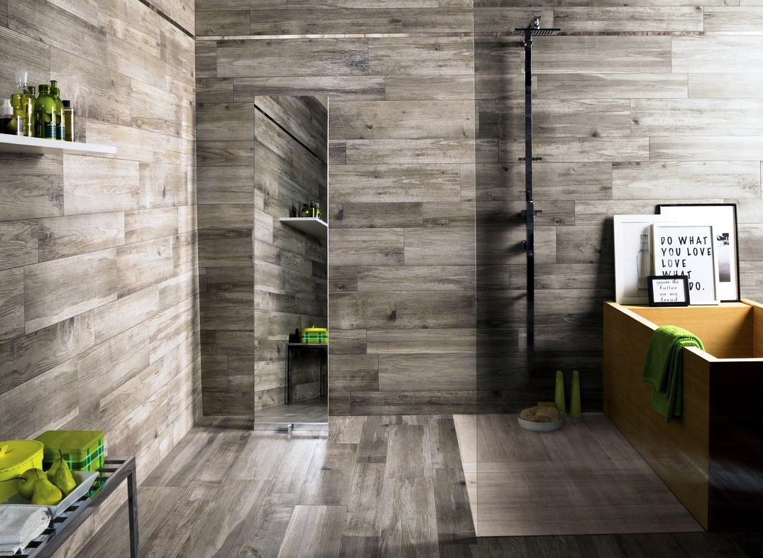 • The 20×120 size adapts perfectly to the shape of the parquet flooring, yet it can still surprise you with its design look that gives a sophisticated tone to your shower if you use wood tile shower walls or floors. It combines perfectly with the 60×120 form.