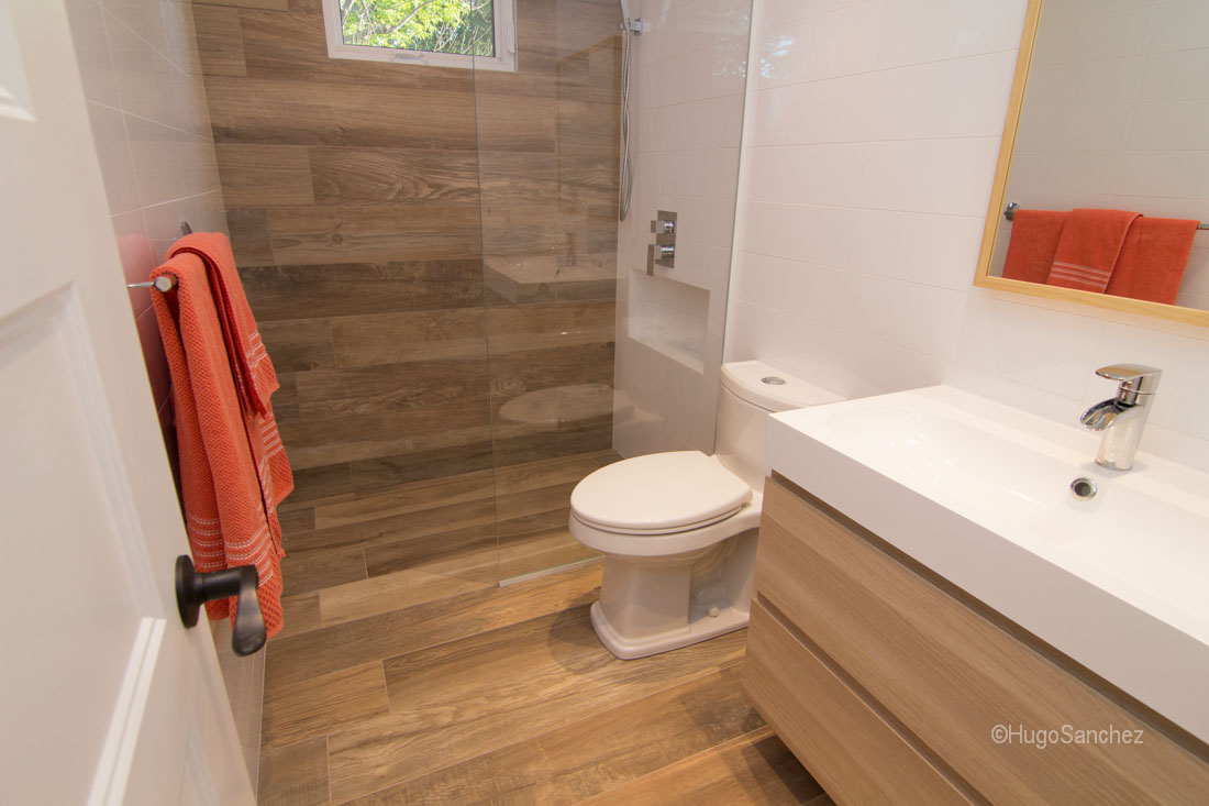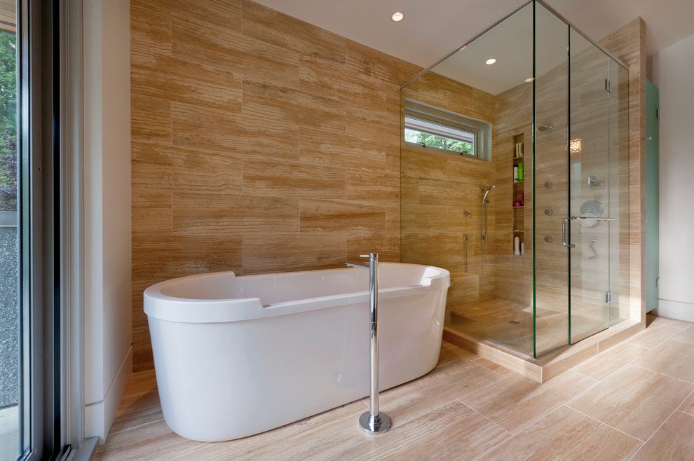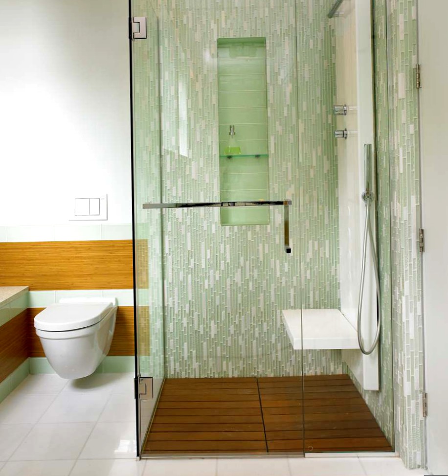 If you decide to use a large-size tile, then pay attention to the slip resistance or roughness index when choosing the tiles of your shower. The wood tile shower should be designed to take into account the frequent and long contact with water.