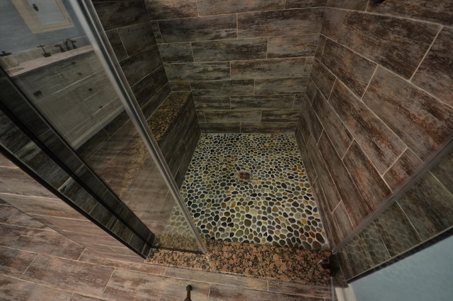 wood tile shower floor